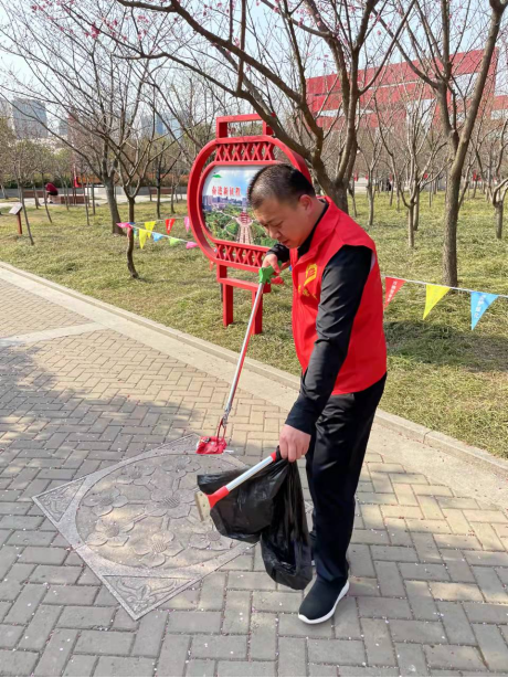2022年3月11日下午,beat365英国官网网站教师党员志愿者一行来到羊山新区百花园,开启以“美好生活看信阳”为主题的党员志愿系列服务活动。