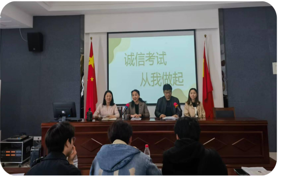 二是帮助考生端正考试态度。在考试的前一天,为端正考风、严肃考纪,营造文明、诚信的良好考试氛围,各班辅导员召开了以“诚信考试,从我做起”的主题班会。会上,辅导员们带领各班同学学习了《学校2023年专升本考试公告》,《国家教育考试违规处理办法》、《考生守则》等内容,向同学们讲解了关于考试作弊的危害,对他们的各项提问一一作了详细解答,同学们签了诚信考试的《承诺书》。党总支书记叶桦深入会场,对同学们进行了心理排解与精神鼓励,她亲切地叮咛大家要有平常心,在考前要放松心态,正确对待考试。会后,辅导员带着各班学生前往考场进行了现场演练。