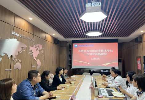 4月20日,beat365英国官网网站刘晓鹂院长、副院长刘文敏一行4人来到河南经贸职业学院外语旅游学院参观交流,外语旅游学院院长王君华, 副院长邓晓婷、何珊及相关负责人参与交流与座谈。