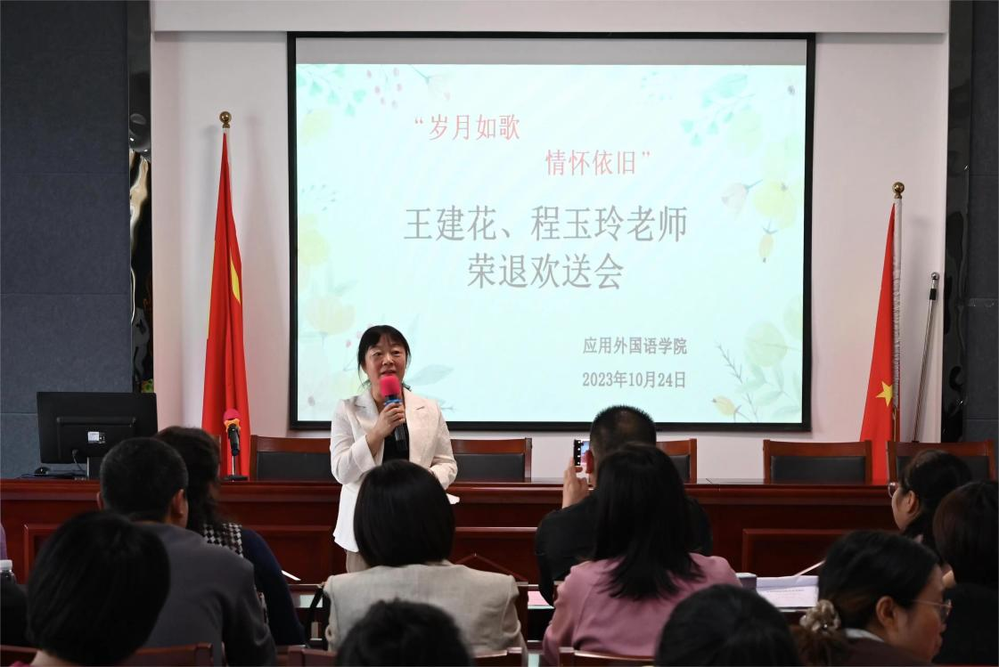2023年10月24日下午,beat365英国官网网站为王建花、程玉玲老师举行荣退欢送会。beat365英国官网网站全体教师参加了此次欢送会,会议由beat365英国官网网站院长刘晓鹂主持。