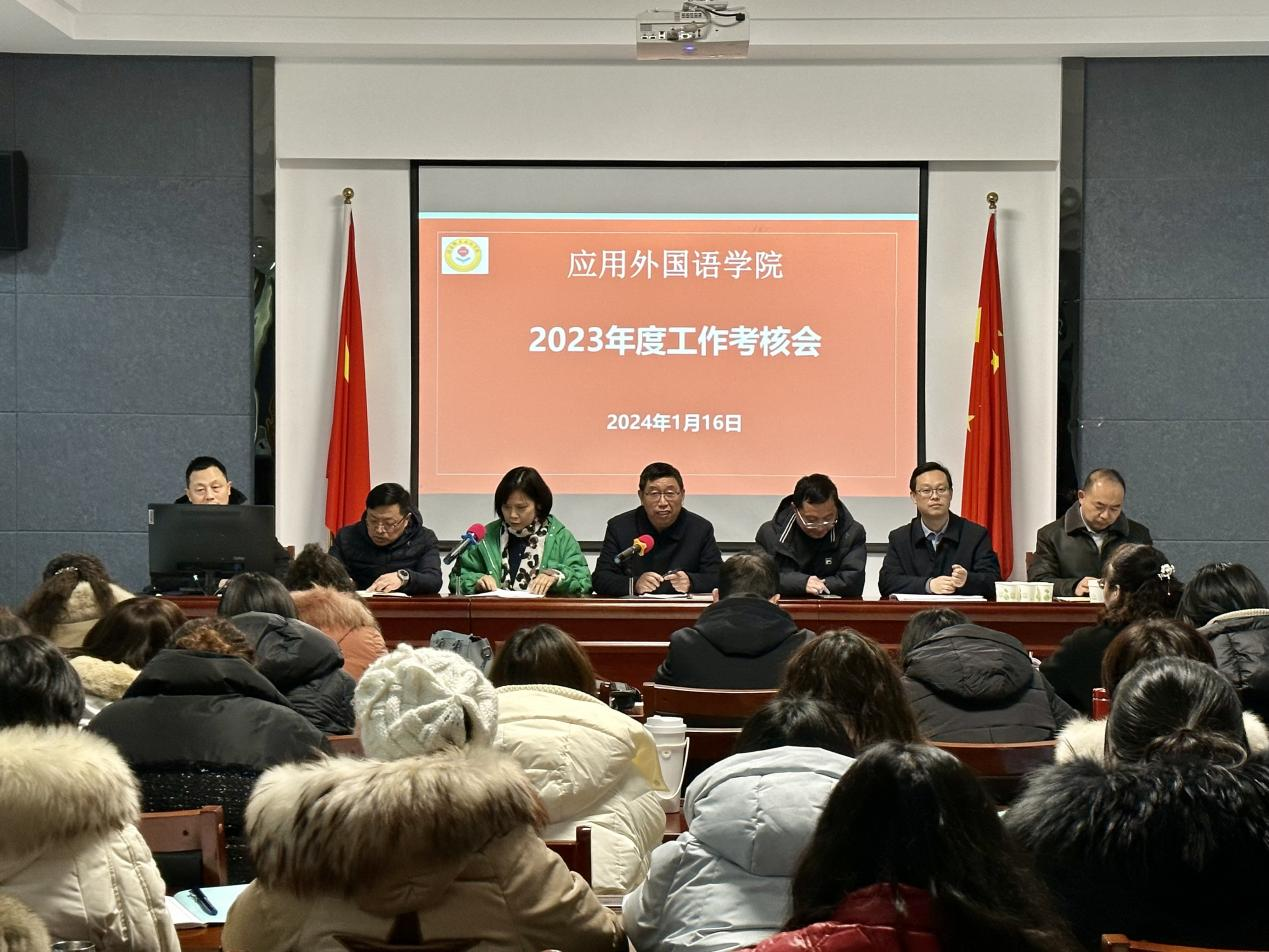2024年1月16日下午,beat365英国官网网站在2402会议室召开2023年度工作考核会。学校年度工作考核组成员、教务处处长余磊等一行参加考核会议、学院院长刘晓鹂及全体教职工参加了会议,会议由余磊主持。