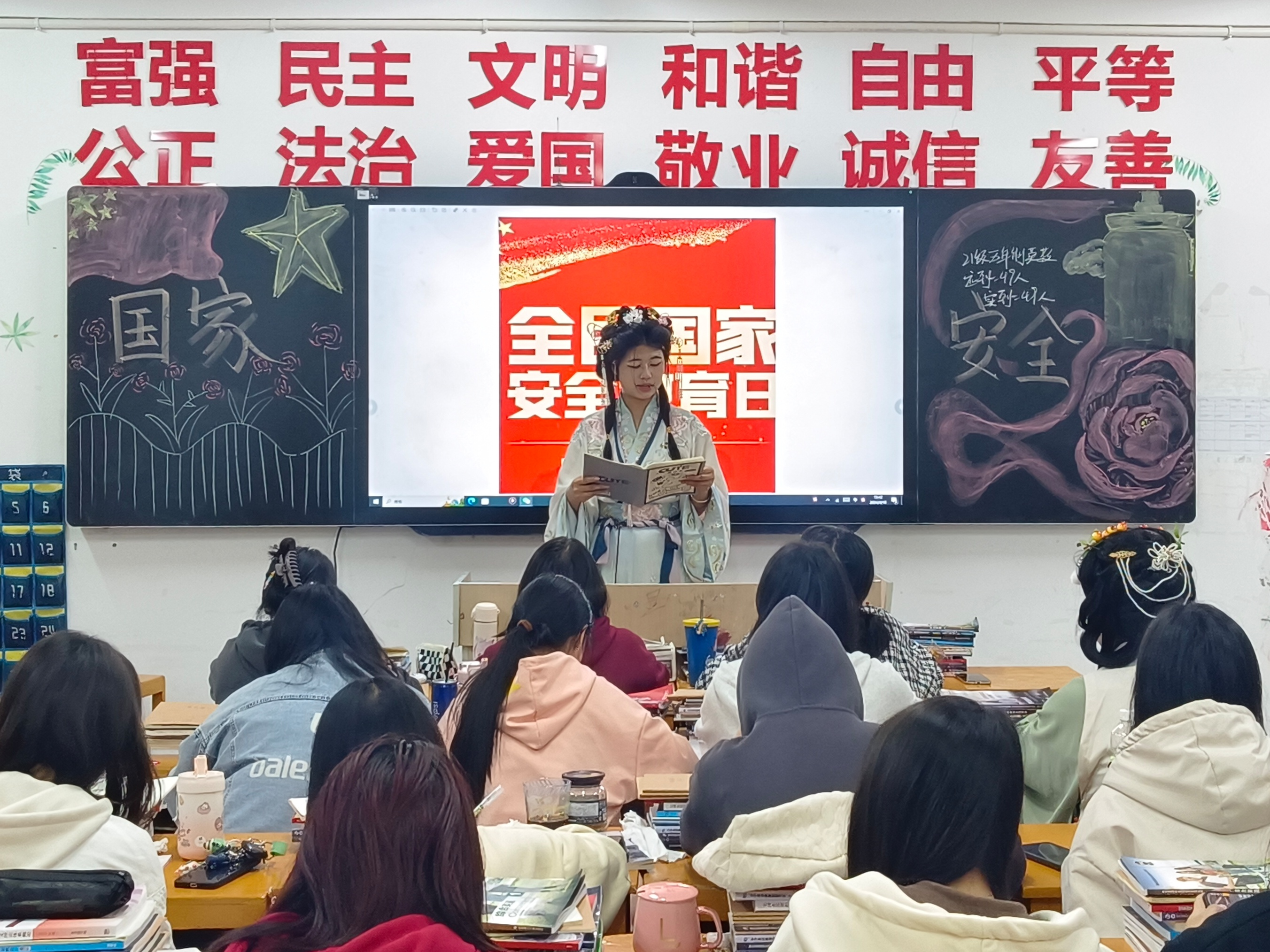 活动一,组织开展国家安全主题班会。同学们通过讨论、分享等形式,深入了解了国家安全的重要性。活动二,组织全体学生观看“千万高校学生同上一堂国家安全教育课”主题公开课。同学们通过聆听专家讲解,进一步了解国家安全领域的相关政策法规,提升了国家安全意识。活动三,开展“挺膺担当时代新人,共筑国家安全防线”为主题的全民国家安全日主题征文活动。同学们通过撰写文章,表达自己对国家安全的理解和感悟,进一步强化国家安全观念。活动四,开展以"丹青颂国安·奋进新时代"为主题书画比赛评比活动,表达同学们对国家安全的赞美和对新时代的向往。活动五,组织参加“全国大学生国家安全知识答题”活动。同学们在答题过程中,巩固了国家安全知识,提高了自身素养。活动六,观看“国开大讲堂·国家安全教育公开课”。同学们进一步提升了对国家安全重要性、国家安全领域热点问题等的认识和维护国家安全的自觉性。