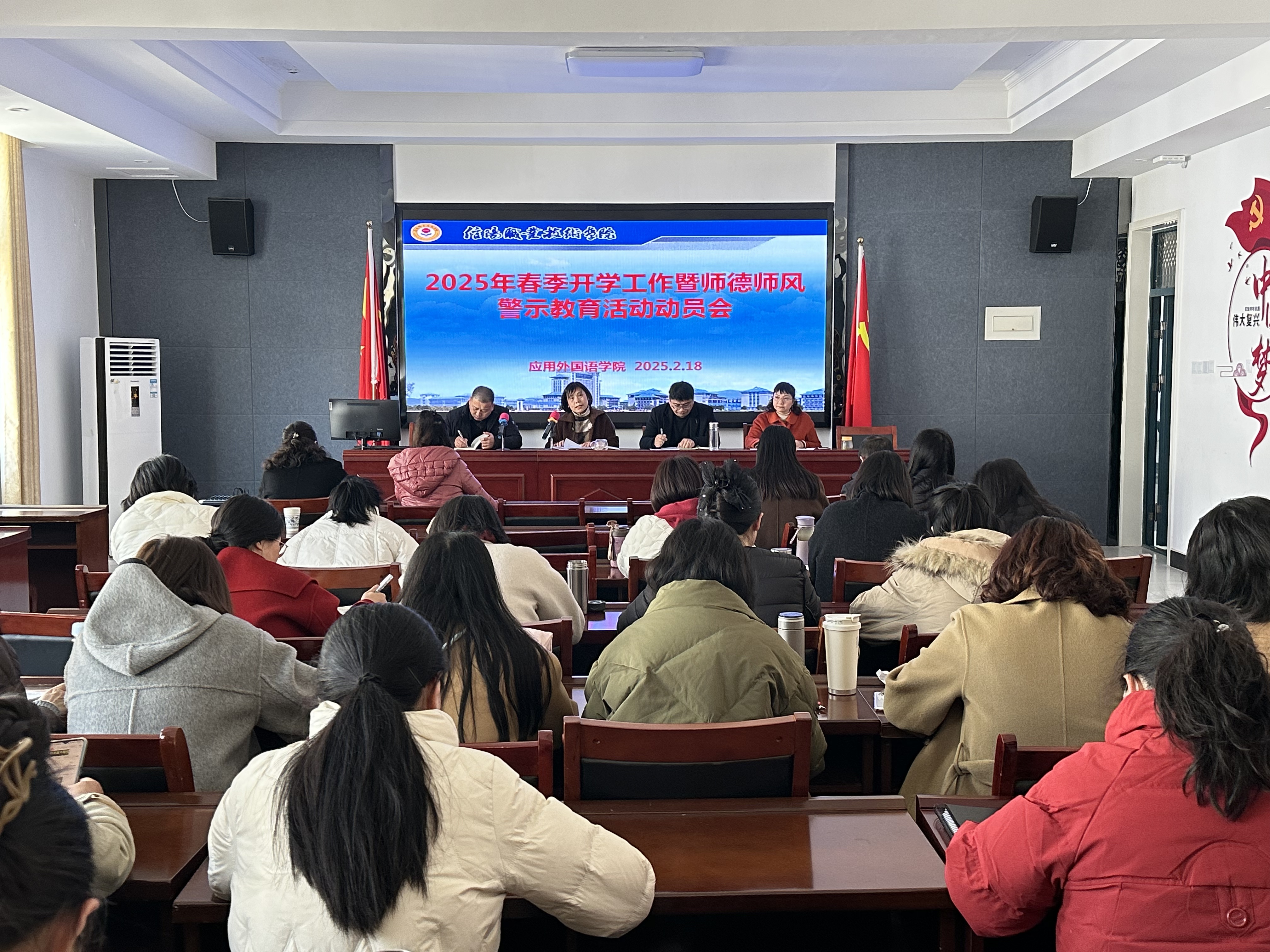 2025年2月18日下午,beat365英国官网网站在2402会议室召开了2025年春季开学工作暨师德师风警示教育活动动员会,全体教职工参加了此次会议。会议由学院副书记张泽锋主持。