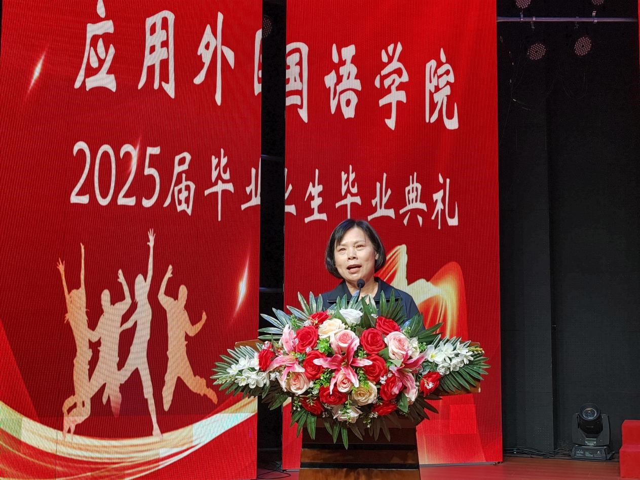 典礼在精美的毕业视频中拉开帷幕。院长刘晓鹂率先向顺利毕业的学子们致以热烈祝贺,她深情回顾了同学们在校期间取得的亮眼成绩,寄语毕业生们要树立远大理想,坚定理想信念,永葆赤诚之心感恩父母、师长、母校的培育。随后,党总支副书记张泽锋宣读了优秀毕业生和优秀实习生名单。2025届毕业生代表王美怡发言,她分享了在校感悟,字里行间满是对师长教诲的感激及校园生活的眷恋。教师代表陈锐鼓励毕业生们在未来的人生赛道上保持学习热情,以拼搏姿态迎接挑战。