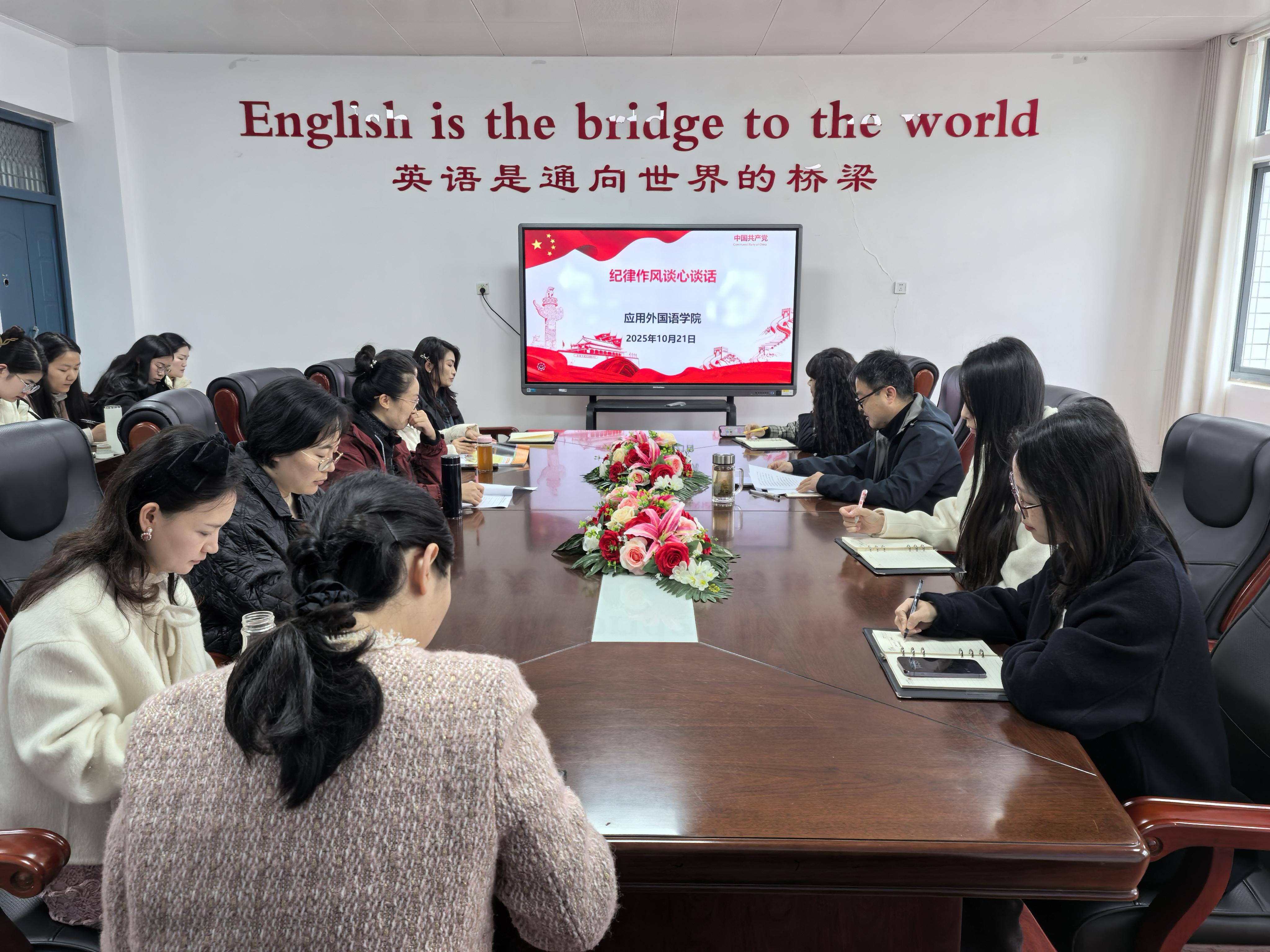 为深入贯彻落实学校党委关于开展“纪律规矩教育月”及“青年知廉”警示教育活动的统一部署要求,切实增强学院党员干部及青年教师的纪律意识、规矩意识和廉洁自律能力, 2025年10月22日,beat365英国官网网站在2406会议室组织召开“面对面”纪律作风谈心谈话会。学院党总支书记徐昊与教研室负责人、青年教师代表进行了集体谈心谈话。