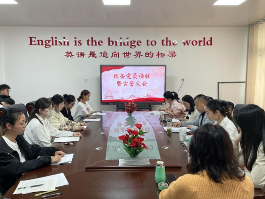 会上,詹海星等12位发展对象分别汇报了自己的基本情况、理论学习和社会实践情况以及需要向党组织说明的其它问题。入党介绍人介绍了对发展对象的培养教育情况,并对他们能否入党表明意见。接着,与会学工支部教师党员对詹海星等12名发展对象能否入党展开充分讨论,进行了无记名投票并形成决议,大会一致同意接收詹海星等12名发展对象为预备党员。宣传委员徐晓双宣读支部决议后,詹海星等12名新党员分别表明了态度。然后,全体党员教师为新党员佩戴党徽,发放党证和党章。学工支部第一党小组组长杨晓睿同志带领全体新党员面对鲜红的党旗进行了庄严的入党宣誓。郭萱瑶、刘力宁分别作为老党员和预备党员代表进行发言。