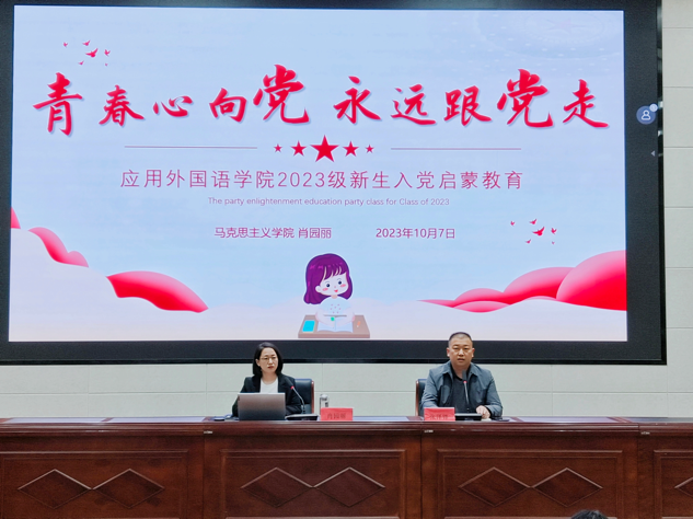 为加深新生对党的认识,引领新生扣好入党“第一粒扣子”,提高政治觉悟和思想素质,引导新生端正入党动机,积极向党组织靠拢。2023年10月7日,beat365英国官网网站开展了“2023级新生入党启蒙教育”活动,马克思主义学院肖园丽老师作专题讲座。beat365英国官网网站党总支副书记张泽锋、学工支部宣传委员徐晓双、22级发展对象、23级全体新生班班主任以及23级全体新生参加此次活动。活动由beat365英国官网网站党总支副书记张泽锋主持。