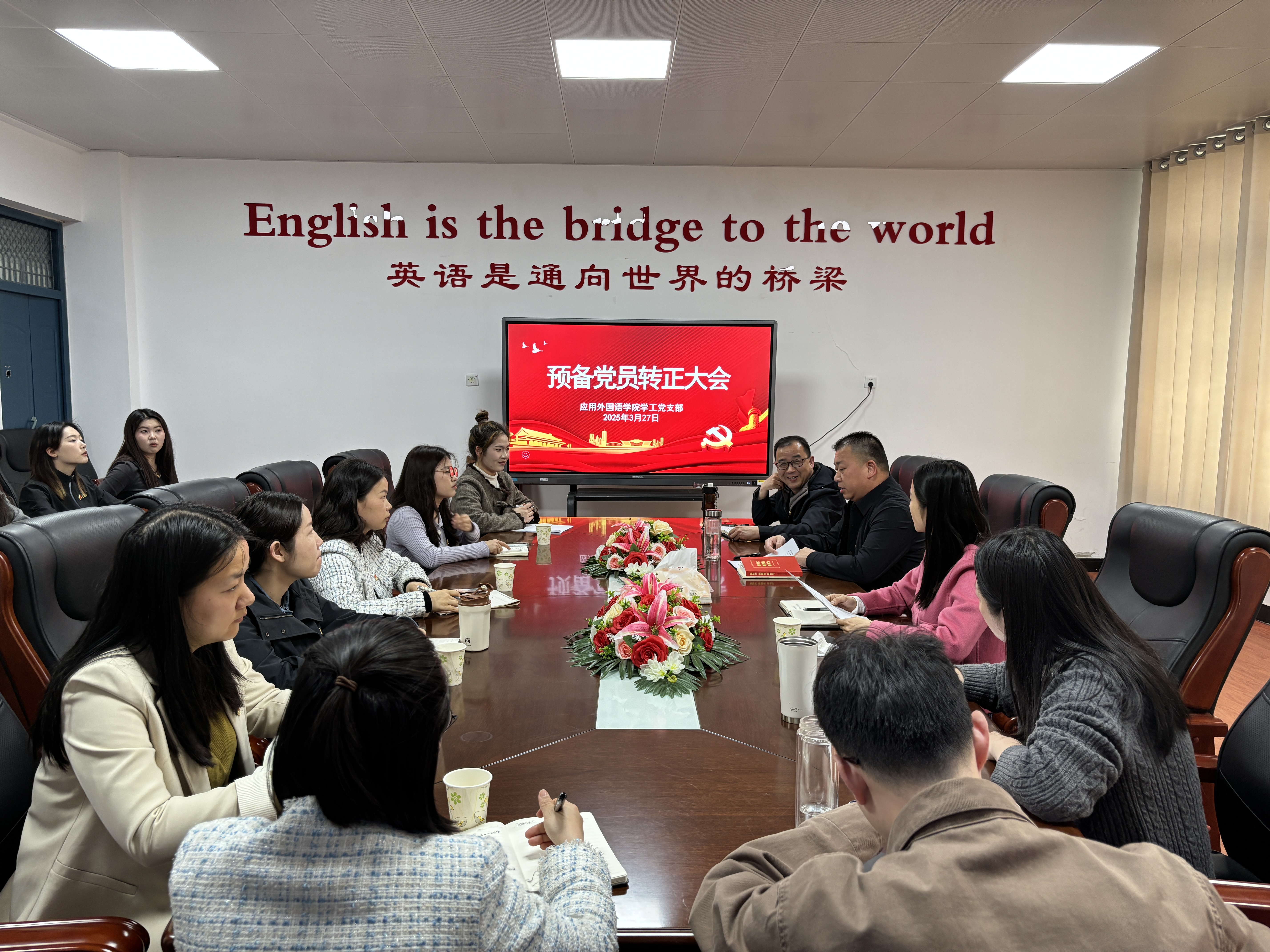 为进一步做好党员发展工作,加强党组织队伍建设,增强党员队伍的凝聚力,beat365英国官网网站于2025年3月27日在2406会议室举行预备党员转正大会。学工支部全体师生成员,入党介绍人肖园丽、谢福良、彭琴,以及程姝雅等6名预备党员参加,会议由组织委员蒋曾主持。