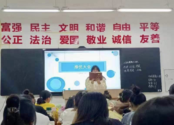 大会伊始,各团支部书记清点各班参加“推优”大会的团员人数,须有半数以上有表决权的团员到会方可进行。接着由团支部书记介绍符合“推优”条件的候选人名单,候选人围绕个人情况、对党的认识、入党动机等方面内容依次上台进行自我介绍。各位候选人介绍完毕后,在场团员进行无记名投票,随后在各团支部书记的监督下进行唱票,确定各团支部的推优人选名单。最后,同学们用掌声祝贺获得推优资格的同学。这既是一种光荣,也是一种使命,意味着他们将会面临更严格的考验,也期待同学们未来不断提升自我能力和政治素养,争取早日加入中国共产党,在自己的青春中留下浓重而独特的一笔。