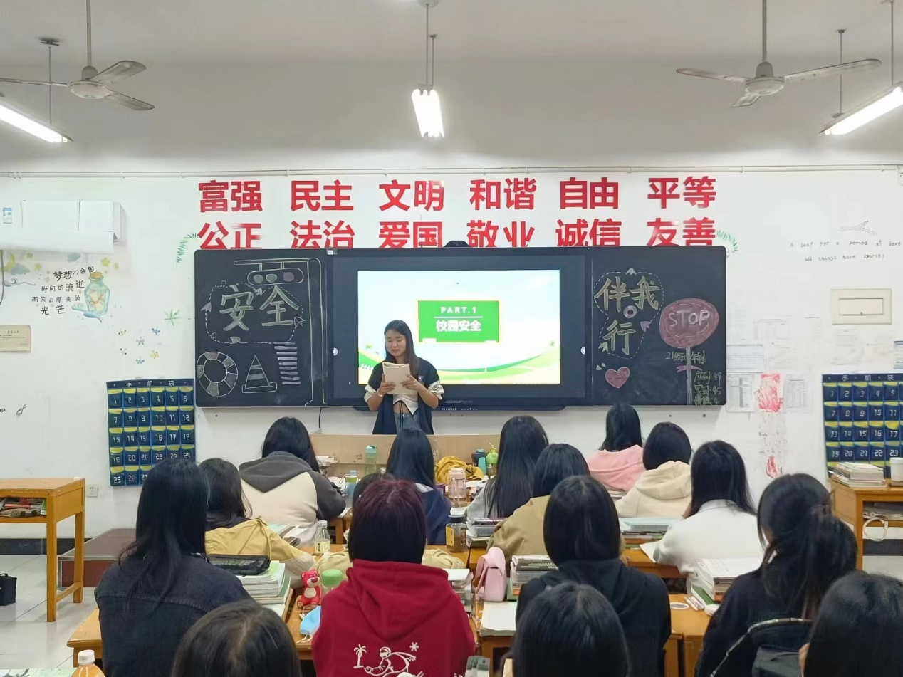 首先,各班班长围绕“安全”主题,结合近期身边发生的案例,对涉及同学们的人身安全和财产安全问题进行讲述,重点强调了防诈防盗、交通安全、宿舍电器使用安全等神人身和财物安全。接着,各班班长播放了各种典型安全事故的报道及视频资料,并为同学们讲解遇到安全险情时如何自我保护和准确报警的方法,教育同学们树立自我保护意识。最后,各班团支书对宿舍安全、校园安全、校外安全应注意的事宜做出了说明以及必要的提醒。大家纷纷表示要从自我做起,以安全为中心,并监督提醒周围的一些危险错误做法,以防安全事故的发生。