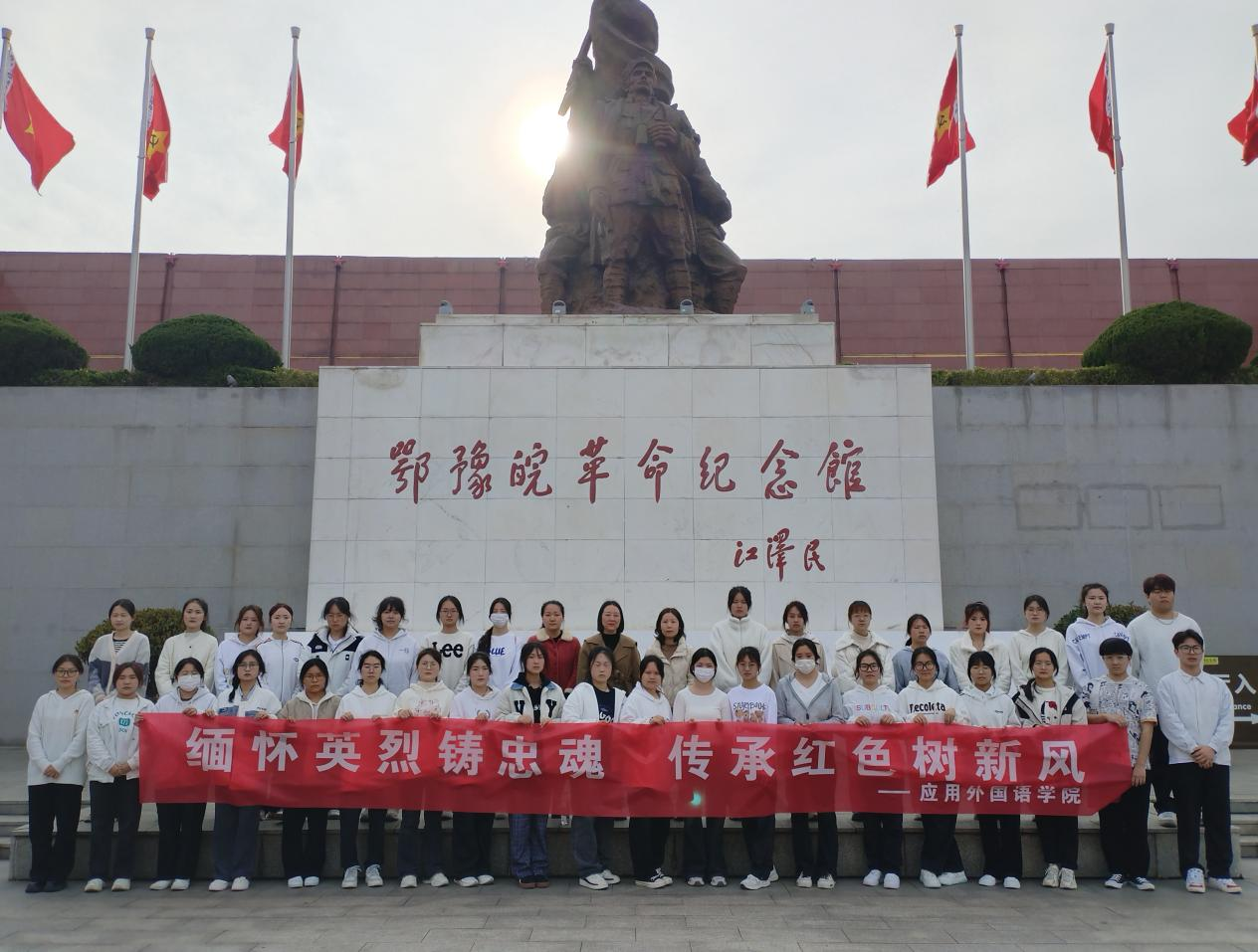为缅怀革命先烈、弘扬革命精神,传承红色基因,在清明节即将来临之际,beat365英国官网网站组织40余名师生前往鄂豫皖革命纪念馆开展“缅怀英烈铸忠魂,传承红色树新风”主题学习活动。