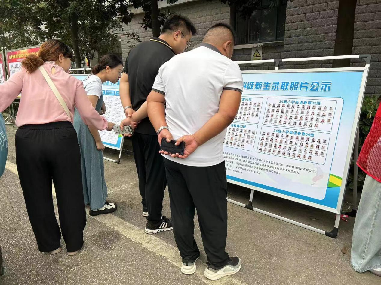 在迎新现场,beat365英国官网网站2024级新生录取照片公示展板格外醒目,吸引众多家长和学生驻足观看。学院在迎新现场按班级公示录取照片,有效起到了公示、监督作用。在各班报到点,辅导员老师进行了证件核对,现场验看录取通知书、身份证、高考准考证信息和新生本人是否一致,并进行了2024级新生入学资格审查登记,完成了现场初审。在整个迎新工作中,入学资格审查工作有条不紊,忙而有序。