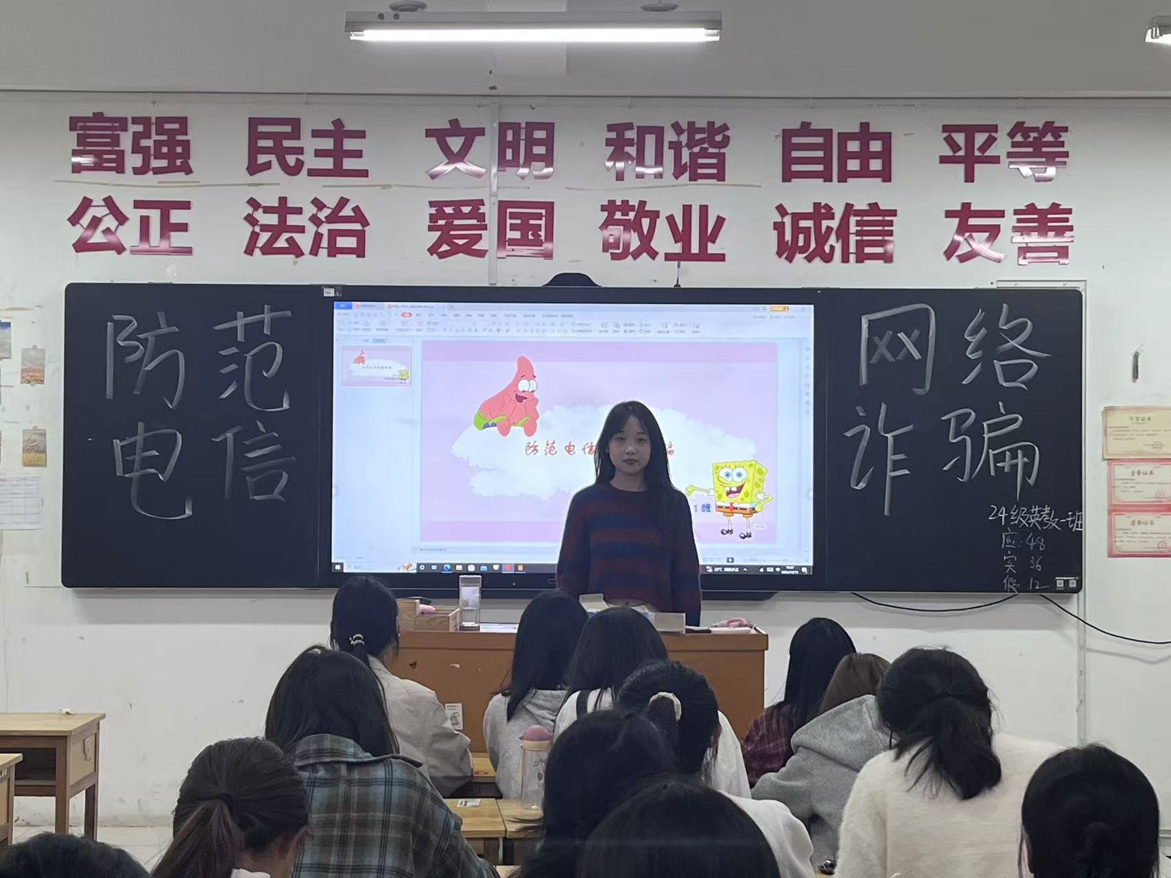 为进一步普及防诈骗知识,提高同学们的安全防范意识,beat365英国官网网站于2024年10月15日晚组织开展“防范电信网络诈骗”主题班会,班会由各班班长主持。