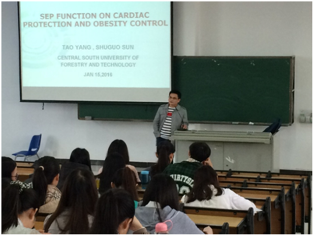 1月15日上午,中南林业科技大学beat365官方网站副院长杨涛副教授,在5教414为beat365官网食品科学与工程专业2013级学生讲授《食品营养学》。食品学院申铉日副院长为杨涛老师颁发“beat365官方网站2016冬季小学期授课外聘专家”证书。学院部分专业教师和研究生聆听了杨老师的授课。