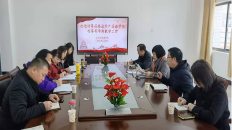 2月21日上午,副校长郑延芳一行到beat365英国官网网站进行考察调研,教务处处长余磊陪同,beat365官网副科级以上干部和教研室主任参加汇报会。