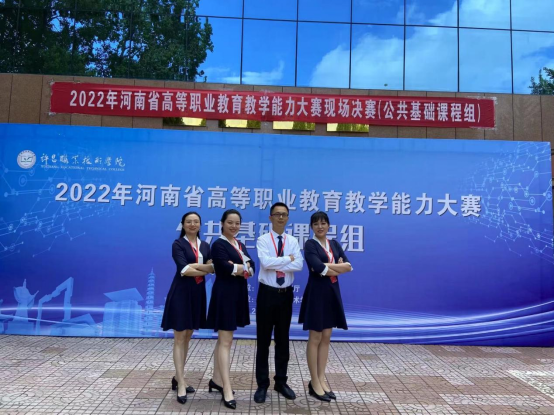 2022年7月5日-7日,由河南省教育厅主办的河南省高等职业教育教学能力大赛(公共基础课程组)现场决赛在许昌职业技术学院举行。学校领导高度重视,大力支持,组建了以院长刘晓鹂为领队,以郭耀军、陈宇、张励亢、张文娟为成员的参赛团队。该团队与来自全省高职院校的46支参赛队伍激烈角逐,最终以公共基础组外语课程第一名的成绩荣获一等奖!