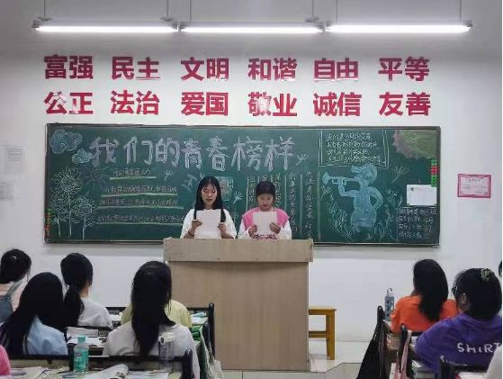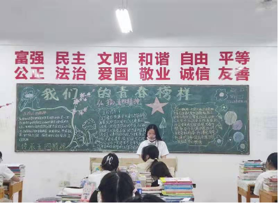 各班团支书对开展“我们的青春榜样”活动进行了详细讲述,旨在号召青年学生在学习青春榜样的事迹中,明白自身的使命与担当,为实现中华民族伟大复兴而奋斗。本次团日活动分为三讲,分别是:热血、榜样、奋进。主讲人从五四运动的爆发、扩大、意义、传承四个方面带大家重温五四历史,学习五四精神,鼓励青年将自己的小我融入到祖国、人民的大我之中,无私奉献,勇担使命。随后,各团支部组织青年团员讨论并讲述他们心中的青春榜样。最后,由主持人对本次主题团日活动进行总结,并强调当代青年要保持“初生牛犊不怕虎”的劲头,从榜样中汲取力量,敢试敢为,努力从无到有、从小到大,把理想变为现实。