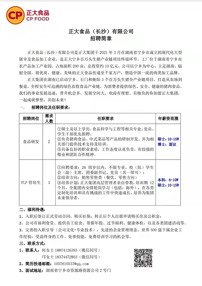 正大食品(长沙)有限公司招聘