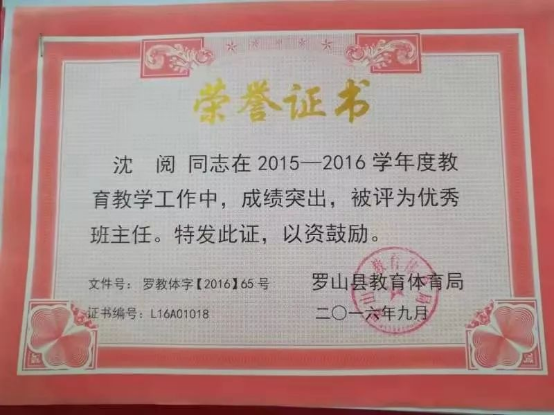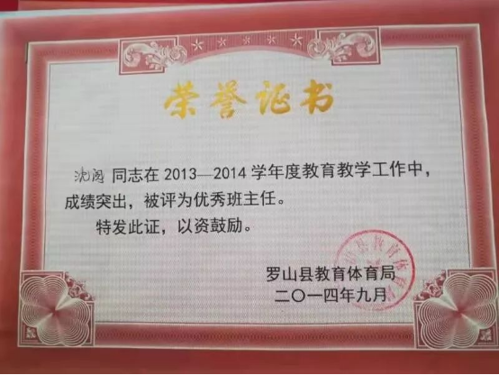 沈阅,beat365英国官网网站2003级英语教育专业学生,自2006年毕业至今,十三年来,他一步一个脚印,先后工作于罗山县莽张初中、莽张高中、罗山县高级中学,连续五年担任省级示范高中毕业班班主任,为985、211院校输送100多名新生。