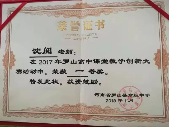 学历上的达标保证了实力上的自信,实力上的自信带来了魅力上的升华,让学生佩服才能赢得他们发自内心的尊敬。他清楚的记得有一次早读,有个淘气学生在一本课外资料上查得一道他自认为很难的选择题写在黑板上,他明知答案是A,却在班里高声说道:“沈老师,请告诉大家为什么这道题答案是B?”在全班同学的注视下,我立刻十分肯定地回答:“答案是B的原因是答案错了,该题的正确答案应该是A”,与此同时,他详细地跟学生解释原因。很神奇,从此之后,班内学生似乎都成了他的粉丝,连看他的眼神都变了。亲其师信其道,从此该班英语课堂纪律和英语成绩超常的好。事后他常反思,如果他的基本功不扎实,被淘气学生牵着鼻子按错误答案B忽悠一通,他即使不被哄下讲台也必然在学生面前威信全无,难以立足。正是在这种危机感和压力下,他始终不忘学习,同时注重探索新的课堂教学模式并加强师生课堂互动,改变了高中课堂“沉闷化”这一共性,连续两年教学成绩在全县同类高中夺魁,期间一批罗高老师曾经来到莽张高中走进他的课堂听课教研。