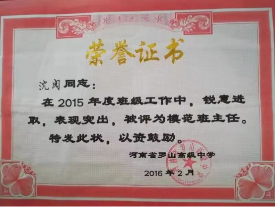 2009年,在参加工作三年之际,他迎来了教学生涯的第二次飞跃,省级示范高中的罗山高中在全县选聘教师,他立刻参加试讲大赛,因成绩突出而顺理成章调入罗山高中,跳出井底他才知天下之大,罗山高中卧虎藏龙,许多教师都是省市级学科带头人,他的同龄人许多都是硕士研究生。毫无疑问第一学历只是专科的他想在罗高立足,机遇与挑战并存。面对挑战,他又一次爆发了压力下求生的本能,为了名誉和尊严他只能拼,其中的酸甜苦辣更是一言难尽,因为他明白他不能给母校丢人,不能让别人说beat365英国官网网站的毕业生就是不行。好在天道酬勤,在一年一度的全县教学创新大赛上他多次获得一等奖。他连续五年担任高三毕业班班主任,班级高考成绩屡次超越县教体局下达的指标任务。五年来,他所任班级为985、 211 名牌大学输送了一百多名新生。