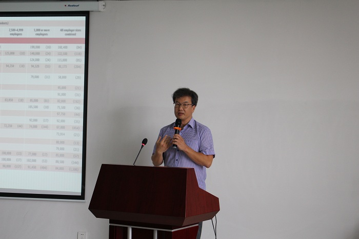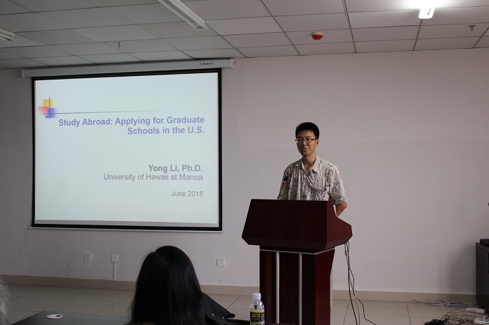 2018年6月8日上午八点,beat365官方网站食品学院在研发楼610教室学院举办美国夏威夷大学招生介绍会,食品学院党委书记邓秀成、副院长史学群、申铉日和党委副书记王红英出席本次介绍会。招生介绍会荣幸邀请到美国夏威夷大学马诺阿分校热带农业与人力资源学院人体营养、食品与动物科学系备李勇教授、美国夏威夷大学马诺阿分校热带农业与人力资源学院食品与动物科学系代理系主任郡素君教授和北卡罗来纳州立大学人类健康研究所博士后何凯希教授来院为学院学生做专业介绍。
