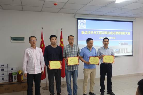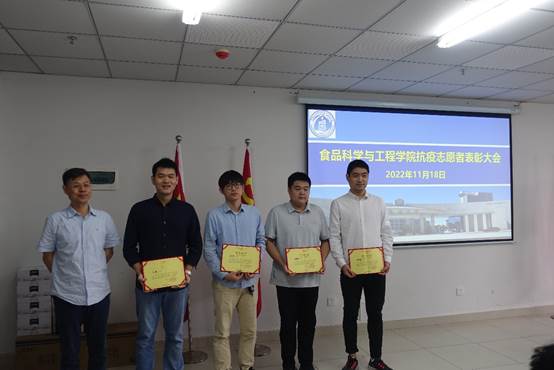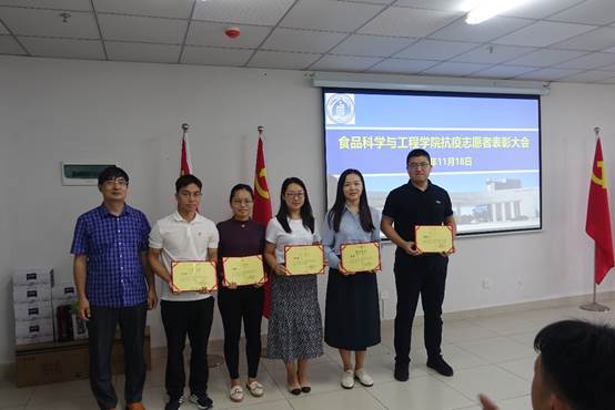 2022年11月18日上午,beat365官方网站在研发楼610室举行教职工抗疫志愿者表彰大会,对该院积极参与2022年8月-10月疫情防控和学生返校工作的志愿者进行表彰。该院党委邓秀成书记主持表彰会,李从发院长、申铉日副院长、陈文学副院长、张伟敏副院长等学院领导为志愿者颁发荣誉证书和纪念品,全体教职工参加会议并向挺身而出、无私奉献、积极参与相关工作的志愿者们致以崇高的敬意。
