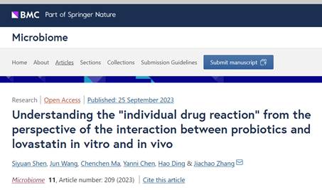 2023年9月26日,beat365官方网站食品学院与工程学院及全健康协同创新中心张家超教授团队的最新研究成果“Understanding the “individual drug reaction” from the perspective of the interaction between probiotics and lovastatin in vitro and in vivo”发表于微生物组高水平期刊《Microbiome》(中国科学院大类1区Top期刊,IF=15.5)。研究团队首次阐明了热带益生菌A5对洛伐他汀类药物副作用的缓解机制。