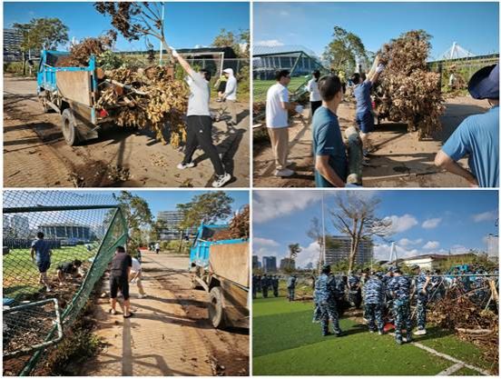 9月13日上午八点,在邢红斌书记、陈文学副院长、于志鹏副院长等学院领导的引领下,学院集结教职工、研究生、2024级beat365官方网站新生等120多人以学校第二田径运动场和农科基地之间道路为主战场开展奋战。到场的老师们、同学们不惧辛苦、不畏艰难、不怕脏乱,顶着烈日、冒着灰尘,分工协作,一边将大树枝集中起来装车,一边将枯枝败叶装袋送进垃圾车内,把路面清扫干净,还要躲避不时迎面而来的运输车辆。