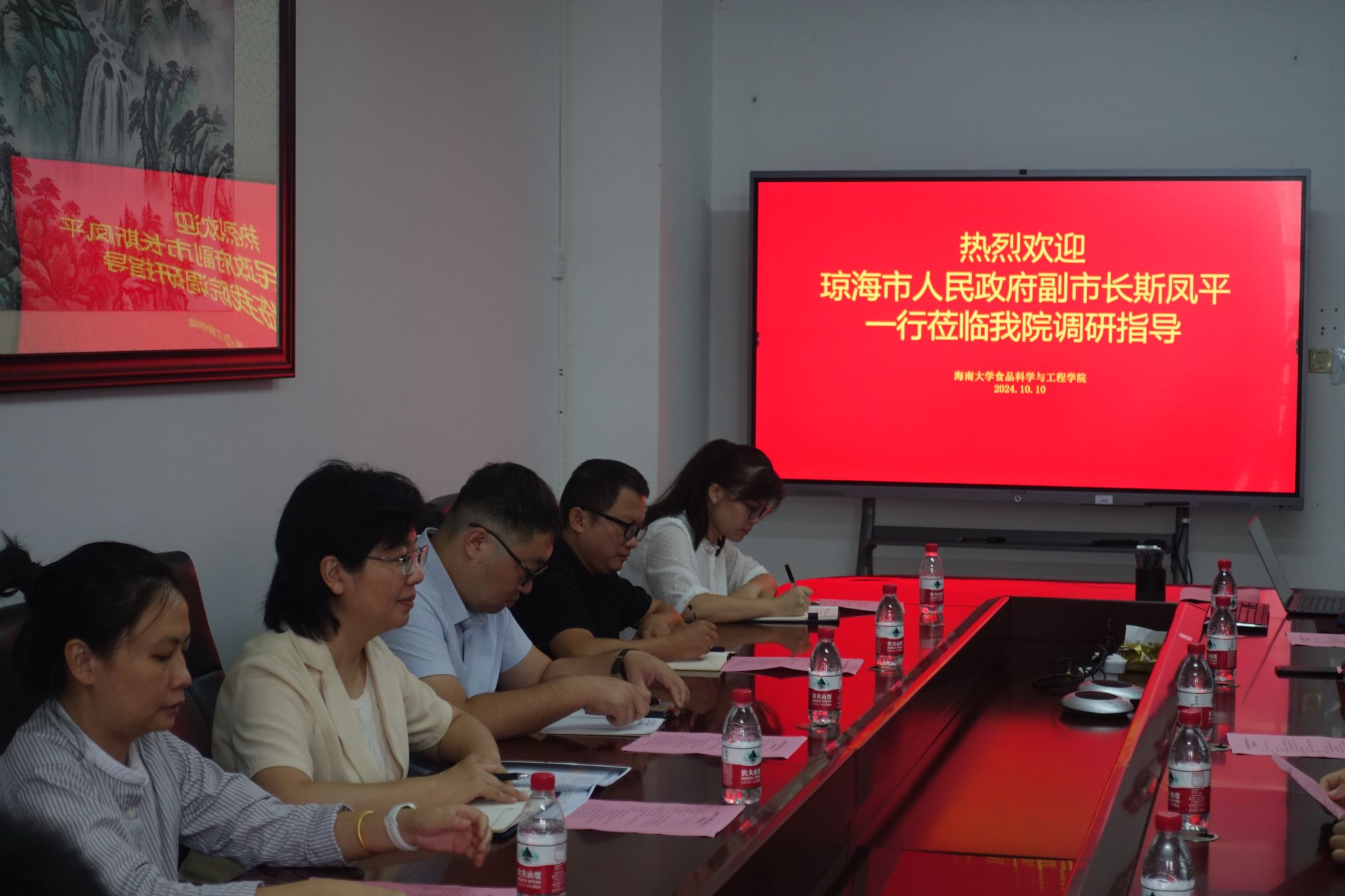 2024年10月10 日上午,琼海市人民政府副市长斯凤平一行赴beat365官方网站调研交流,beat365官方网站张家超副院长(主持学院行政工作)、陈文学副院长、李川副院长、于志鹏副院长(挂职)、云永欢副院长(挂职)及七大研究方向负责人(骨干)出席座谈会。